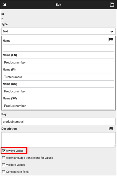 If the “Always visible” option in the property filed information is checked, the property field is already displayed in the asset edit view.