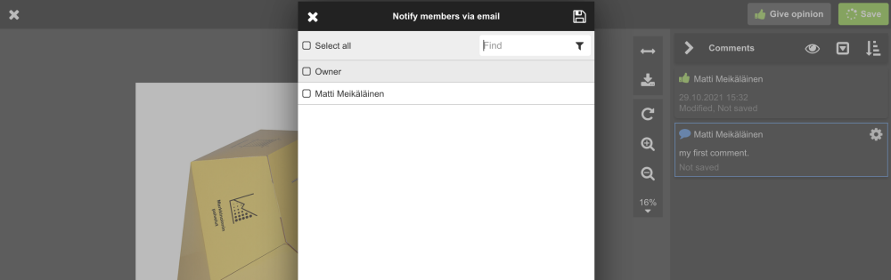 Notify by email: To notify project members via email after saving, select the users in the check box.