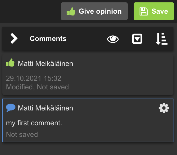 After you give your opinion or comment, they will first appear as not saved (draft).