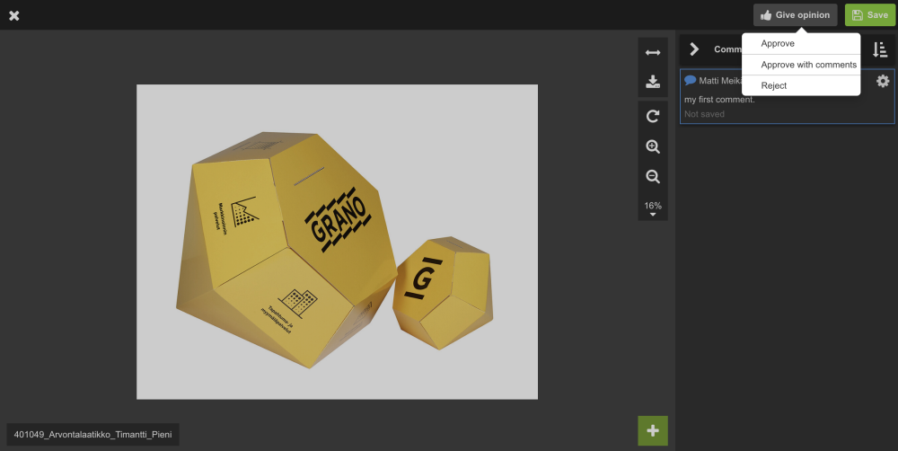 In the commenting view, a proof can be approve in three ways: