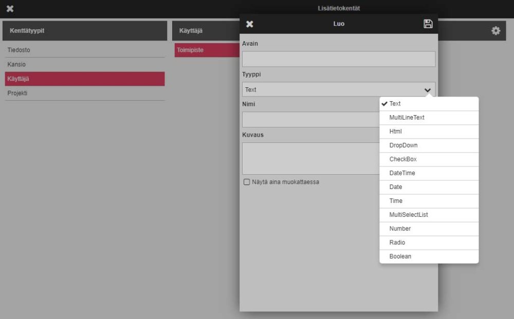 The screenshot shows the settings for the New additional information field with options for Yes or No.