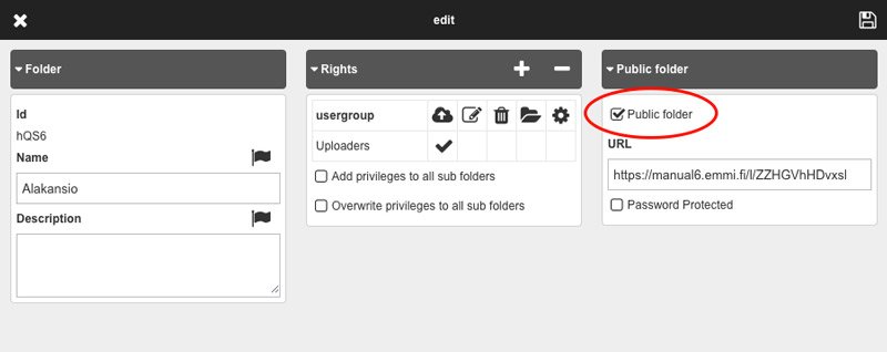 2. Check the “Public folder” checkbox, after which the system will generate a public address for the folders.