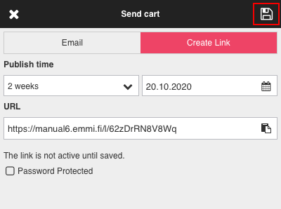 - You can protect the cart with a password and choose whether you will send the password to the recipient in a separate email. If you choose not to send the password, you can send it yourself with a method of your selection.