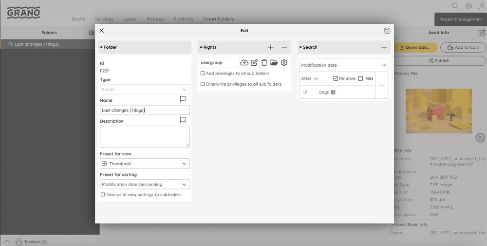 Smart Folders: Create folders based on search queries with Smart Folders. Smart Folders serve as a powerful tool for tracking e.g. newly created assets, modifications, and assets that require attention.