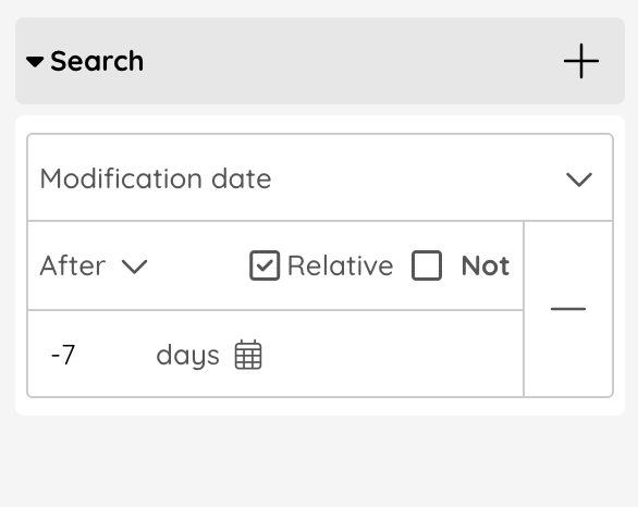 A search criterion has been added to the smar folder. There can be Multiple search criterias, just like when using the regular asset search function.