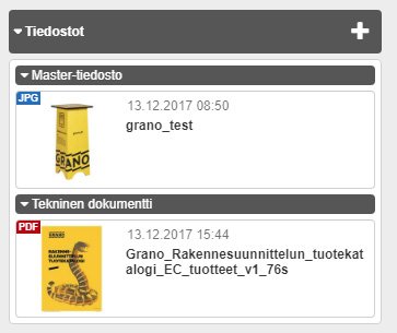 Ladataan tekninen dokumentti —> Jonka jälkeen liitetiedosto näkyy ‘Tiedostot / Tekninen dokumentti’ alla.