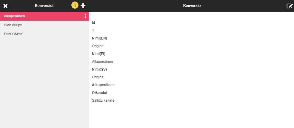 Hallitse konversioasetuksia tai luo uusi konversio (+)painikkeesta.