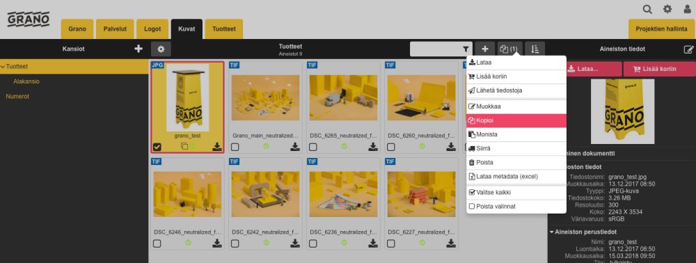 Voit kopioida aineiston yhteen tai useampaan kansioon ‘Kopioi’ toiminnon avulla:
