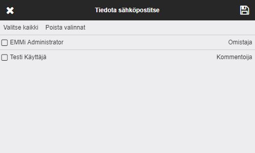 Keskustelun viesteistä voidaan lähettää ilmoitus projektin jäsenille. Ruksi käyttäjät joille halutaan lähettää viesti. Sähköposti sisältää käyttäjän viestin lisäksi linkin projektiin.