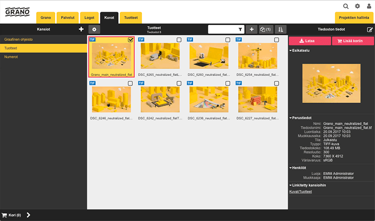 Esimerkissä lataamme tiedoston käyttämällä tuotenumeroa. Ladattavan aineiston tiedoston nimi tässä tapauksessa on tuotenumero eli 123456.jpg.