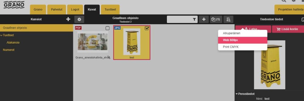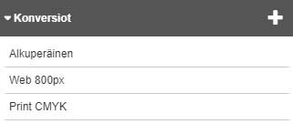 Aineistolle voidaan esimerkiksi tallentaa valmiiksi eri konversioita eri käyttötarkoituksia varten, esimerkiksi 800 px kokoinen kuva web-käyttöön, painokelpoinen CMYK-kuva jne.