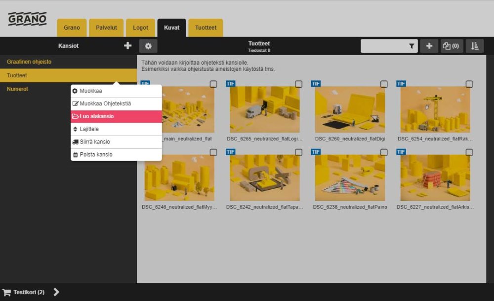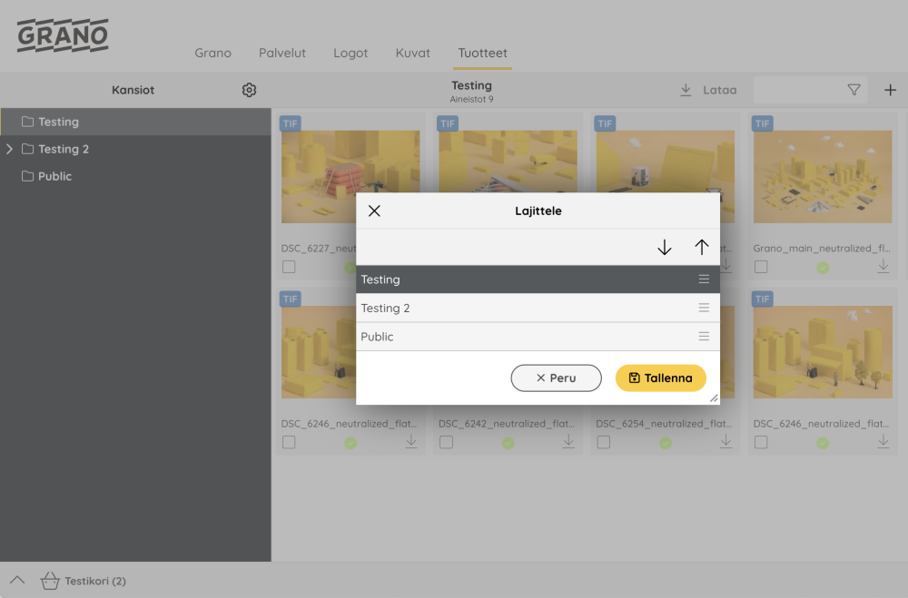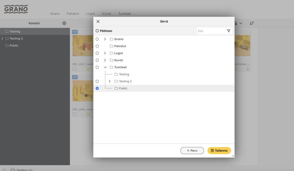 Tässä esimerkissä Testing niminen kansio siirretään Public kansion alle.