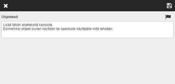 Voit lisätä ohjetekstin eri kielille valitsemalla (flag)