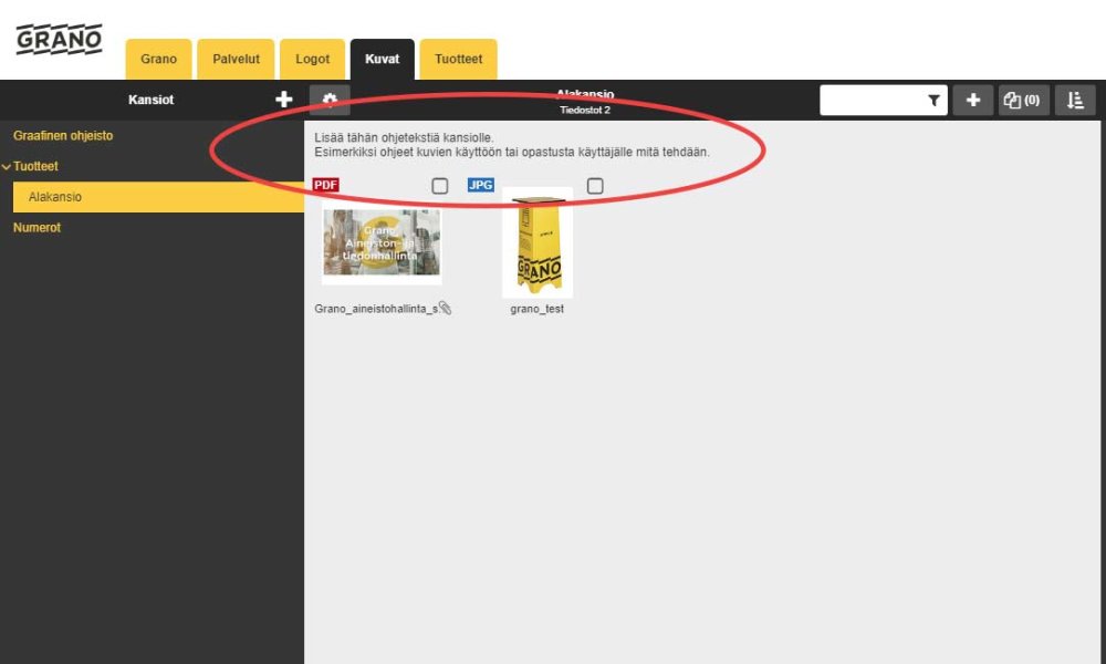 Tämä jälkeen ohjeteksti tulee näkyviin aineistonäkymään.