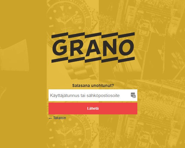Unohtuneen salasanan tai käyttäjätunnuksen voi tilata “Salasana unohtunut” -linkistä.