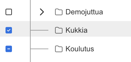 - Tyhjä valintaruutu = kansio ei sisällä sisällä valittuja aineistoja